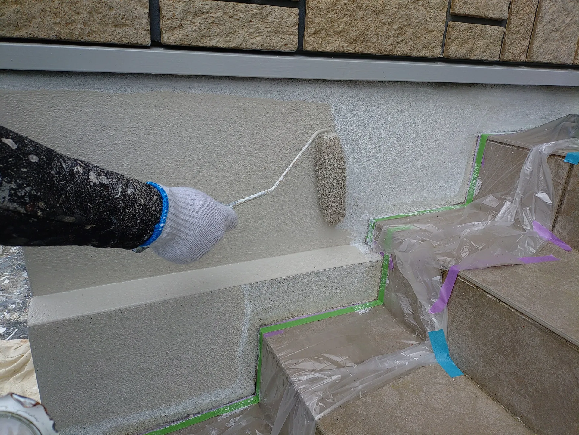 基礎塗装を行うメリットは、苔、汚れが付きにくいという点、そもそもモルタルそのままの状態に比べると保護される事で劣化を遅らせるという事も可能という事になります。
